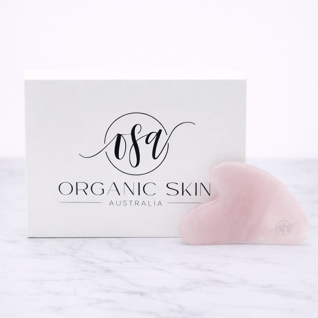 After cleansing, apply OSA Rejuvenate Face Oil. Gently perform the Gua Sha scraping technique to increase micro-circulation, stimulate lymph flow, reduce puffiness and facial tension and soften wrinkles and fine lines.