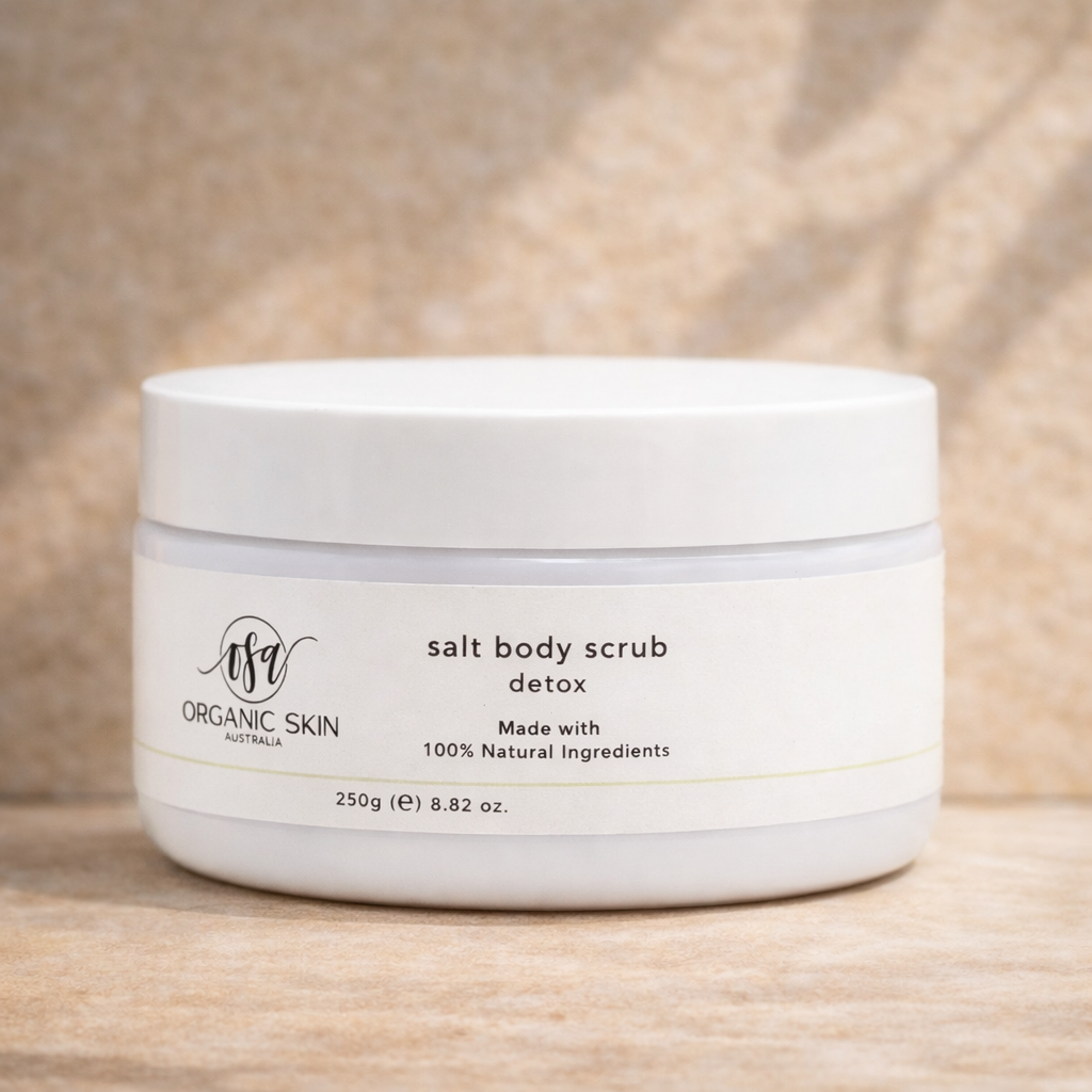 Gently exfoliate away dead skin cells with this luxurious blend of mineral-rich Himalayan Salt and nourishing shea butter. The skin will be left feeling hydrated, silky smooth and glowing with health. The OSA Signature Detox blend of Grapefruit, Juniper Berry, Lemon and Rosemary will invigorate, purify and support the release of toxins.